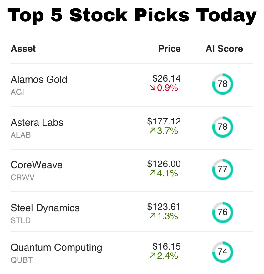 AI might dominate headlines, but the strongest signals aren’t just coming from mega-cap tech. This week’s top AI-scoring stocks span gold mining, semiconductors, cloud infrastructure, and quantum computing.