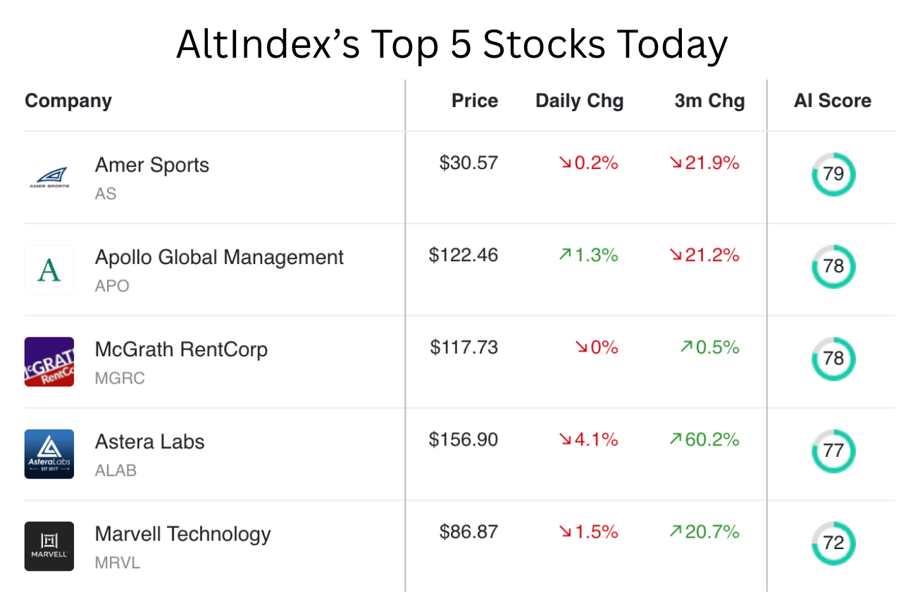 It’s nice when you see a stock consistently get high ratings like Astera Labs (ALAB) or Marvell Technology (MRVL). But honestly, it’s refreshing to see new names like Amer Sports, Apollo Global, and McGrath in our top 5.