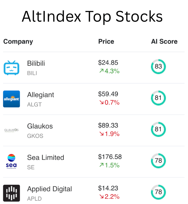 But those are all surface-level stories—we’re bringing you whats happening in the undercurrents with today’s top AltIndex stocks and signals.
